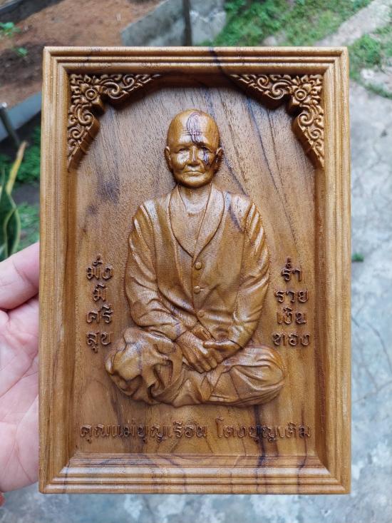 ไม้สักแกะสลักมงคล คุณแม่บุญเรือน กว้าง14ซม.สูง20ซม.หนา2.5ซม.+ขาตั้ง เคาะแรกแดง