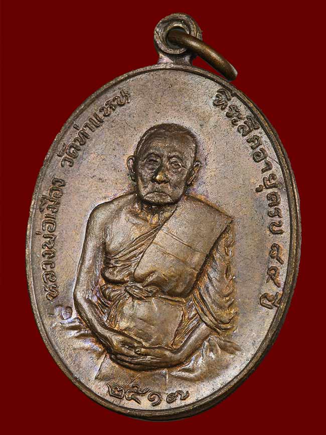วัดใจ เหรียญหลวงพ่อเมือง วัดท่าแหน จ.ลำปาง ปี2517 เนื่้อทองแดงพิมพ์ใหญ่ |