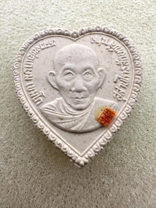 พระผงรูปหัวใจ หลวงพ่อเกษม เขมโก สุสานไตรลักษณ์ จ.ลำปาง ปี2535 (60พรรษา มหาราชินี) ด้านหน้าติดจีวร กล่องเดิม...
