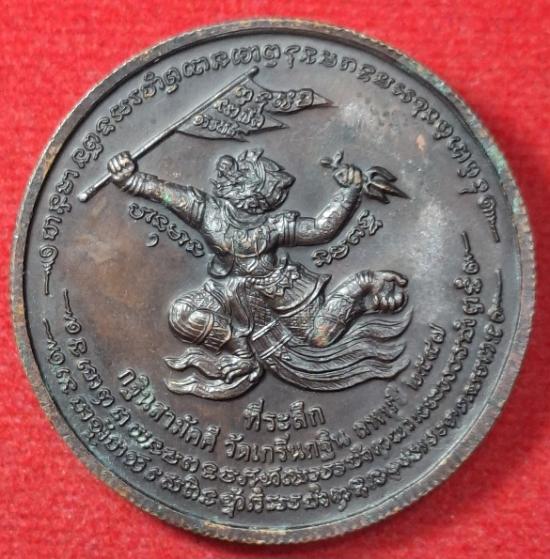 เหรียญบาตรน้ำมนต์-หลังหนุมานเชิญธง หลวงพ่อเพี้ยน วัดเกริ่นกฐิน จ.ลพบุรี ปี2547 (ที่ระลึกกฐินสามัคคี สภาพสวย หายาก)