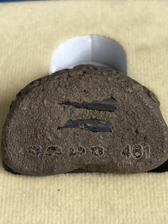 เนื้อ ดินผสมว่านตะกรุดเงินคู่ มีโค๊ตและหมายเลข |