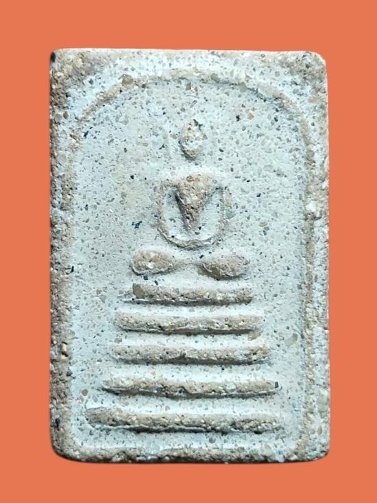 องค์นี้เป็นพระเนื้อผงขาวผสมทรายเสก แร่อุกกาบาต มวลสารเยอะมากครับ อานุภาพทรายเสก ป้องกันภยันตราย กันสิ่งชั่วร้าย องค์นี้ตัดชิดซุ้ม เป็นพระยุคต้นที่หายากแล้วครับ