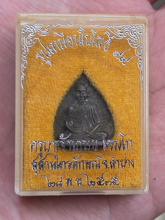 พระรูปเหมือนใบโพธิ์ 99 หลวงพ่อเกษม เขมโก ปี 2535 เนื้อนวะโลหะ ตอกโค๊ต หมายเลข 2552 สภาพสวยสภาพเดิมๆ พร้อมกล่องเดิม |