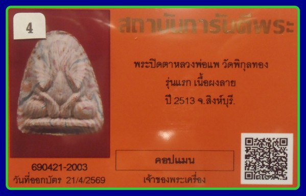 สวยมากก- บัตรการันตี -700-พระปิดตามหาอุตม์ เนื้อผงสายรุ้ง หลวงพ่อแพ วัดพิกุลทอง จ.สิงห์บุรี พศ.2513