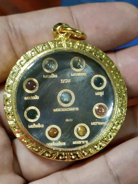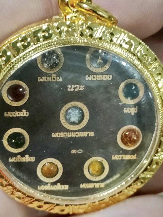 เหรียญสวยๆ สภาพเดิมๆ เนื้อนวะ เลี่ยมกรอบทองล้อมเพชร(ไม่ใช่ทองคำนะครับ) ด้านหลังติดมวลสาร 9 ชนิด