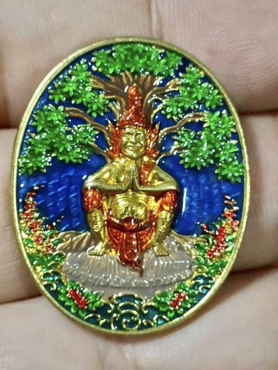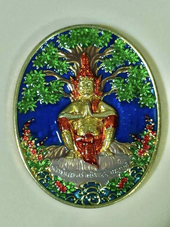 ญพุทธศิลป์ญปู่ฤาษีเบิกไพรร่ายมนต์ พระอาจารย์เลี้ยง วัดจอมเกษ จ.อยุธยา เนื้อชนวนน้ำทอง ลงยาน้ำเงิน ลงยาองค์-ต้นไม้ ตอกโค๊ต ชน ตอกหมายเลข 7 ตอกโค๊ตยันต์