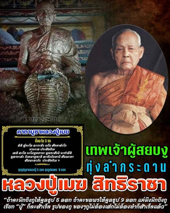 หากทำการบูชาหลวงปู่เมฆ วัดลำกระดานเป็นการเฉพาะ ท่านว่าให้จุดธูป 5 ดอก แต่หากจะบนบานขอพรให้จุดธูป 9 ดอก ตั้ง นะโม 3 จบ สวดคำบูชา อิติ สุคะโต อะระหัง เมโฆ สัจจาสะโภ นามะเต ปะสิทธิเม เอหิ อะโห นะโมพุทธายะ พุทธะสังมิ นะชาลีติ อุอากะสะ มิเตพาหุหะติ อะหังวันทามิ สัพพะทา สัพพะลาภัง ปะสิทธิ เม จากนั้นทําการอธิษฐานขอพรจากหลวงปู่เมฆ ตามความปรารถนา