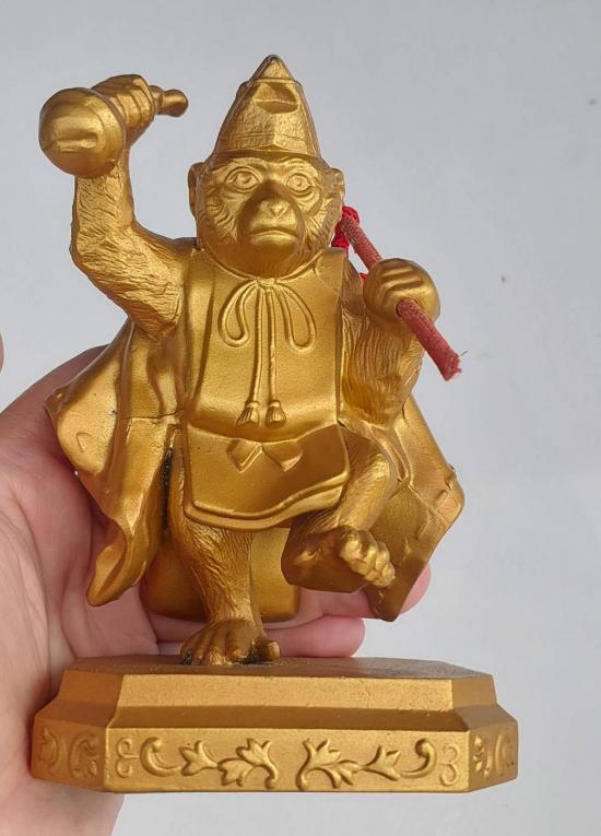 ***วัดใจ***เจ้าพ่อเห้งเจีย เนื้อโลหะสีทองพ่นทราย ฐาน 3.5 X สูง 5.5 นิ้ว