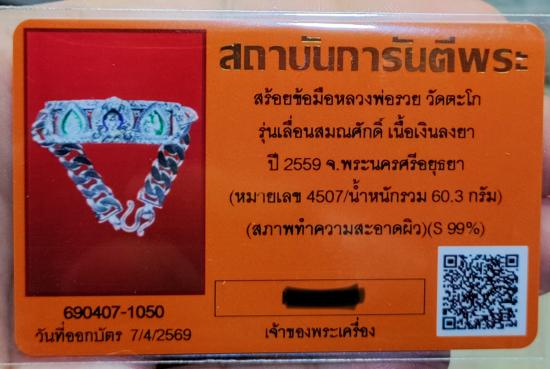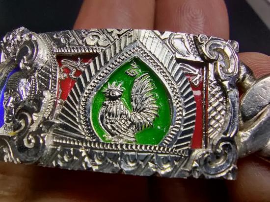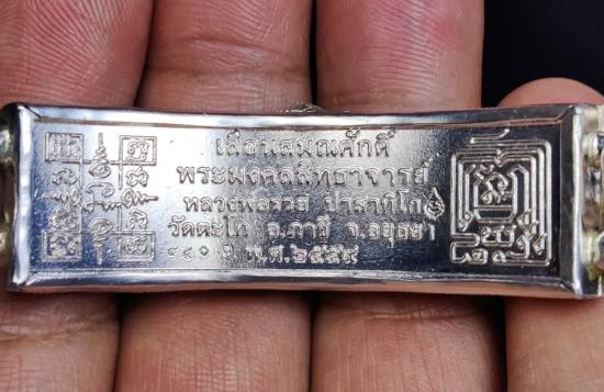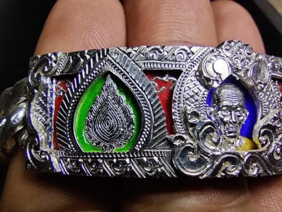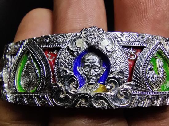 หลวงพ่อรวย วัดตะโก จ.อยุธยา เลสข้อมือรุ่น เลื่อนสมณศักดิ์ ปี2559 ขนาด4 บาท เนื้อเงินลงยา เลี่ยมกรอบเงิน รุ่นนิยม