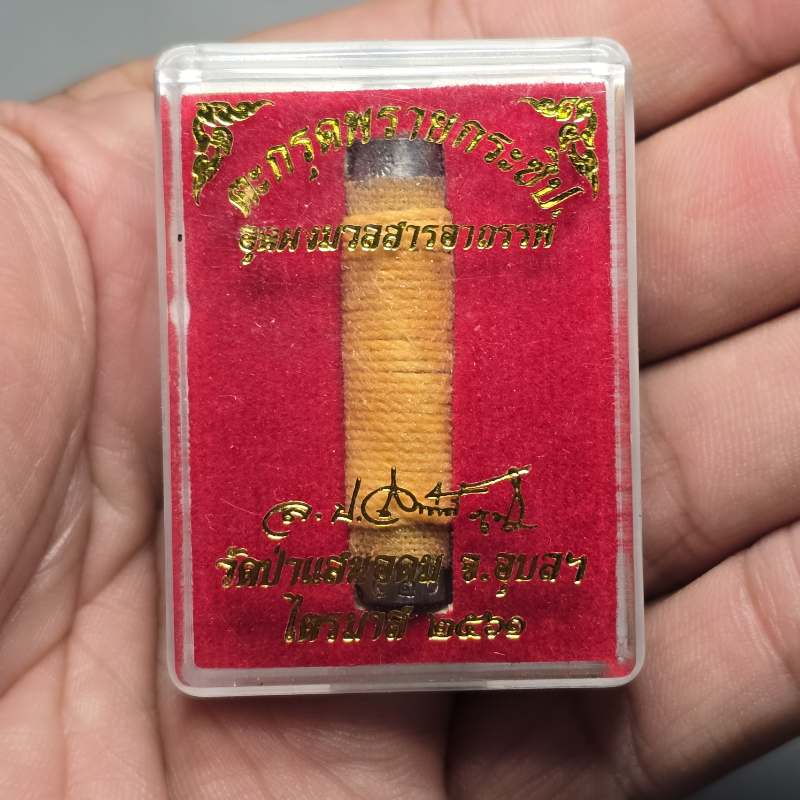 (เชือกพันทำจากผ้าห่อศพ) ตะกรุดพรายกระซิบ หลวงปู่สวัสดิ์ ภูมิสาโร วัดป่าแสนอุดม จ.อุบลฯ ลูกศิษย์เอก อ.เปล่ง บุญยืน กล่องเดิมจากวัด |