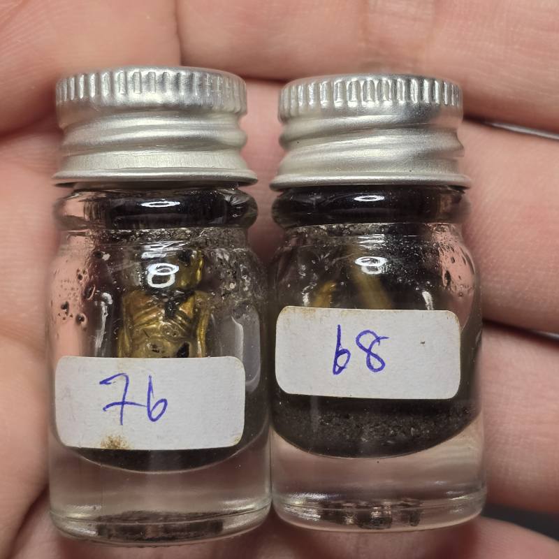 ลูกกรอกพรายกระซิบ เนื้อชนวนอาถรรพ์ หลวงปู่สวัสดิ์ ภูมิสาโร วัดป่าแสนอุดม จ.อุบลฯ แช่น้ำมันพราย ใส่ผงพราย และผงอาถรรพ์ 7 ป่าช้า ผงพรายลูกกรอก ตะกรุดพราย