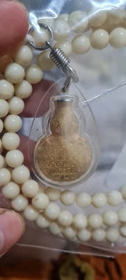 เหรียญน้ำเต้าดูดทรัพย์ ปี 2558 หลวงตาม้า วัดถ้ำเมืองนะ พร้อมรอยจารหลวงตาม้า เลี่ยมจากวัดพร้อมประคำ |