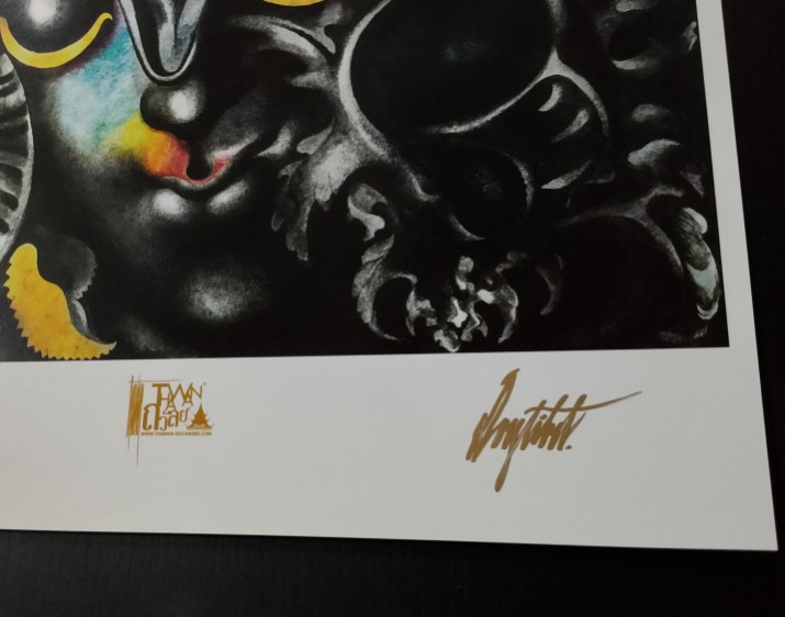ภาพพิมพ์กระดาษเกรดมิวเซียม ภาพหน้ากากแผ่นดิน + ลายเซ็นสดสีทอง (หายากแล้วครับ) = ขออนุญาติท่าน อ.ถวัลย์ ดัชนี ขอแบ่งปันภาพพิมพ์ศิลปินระดับโลก ขนาด30x33.5cm.(รวมขอบ)ไม่ผ่านการใช้ เหมาะเข้ากรอบเป็นของกำนัลในโอกาสต่างๆหรือประดับห้องในคอนโด ห้องทำงาน ห้องรับแขก ห้องนั่งเล่น หรือมุมโปรด