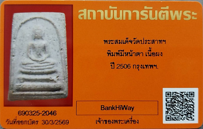 พระสมเด็จ วัดปราสาทฯ พิมพ์มีหน้ามีตา ปี2506
