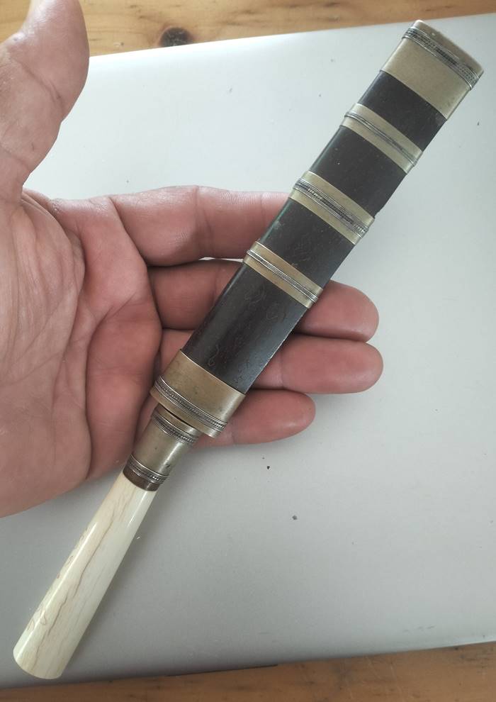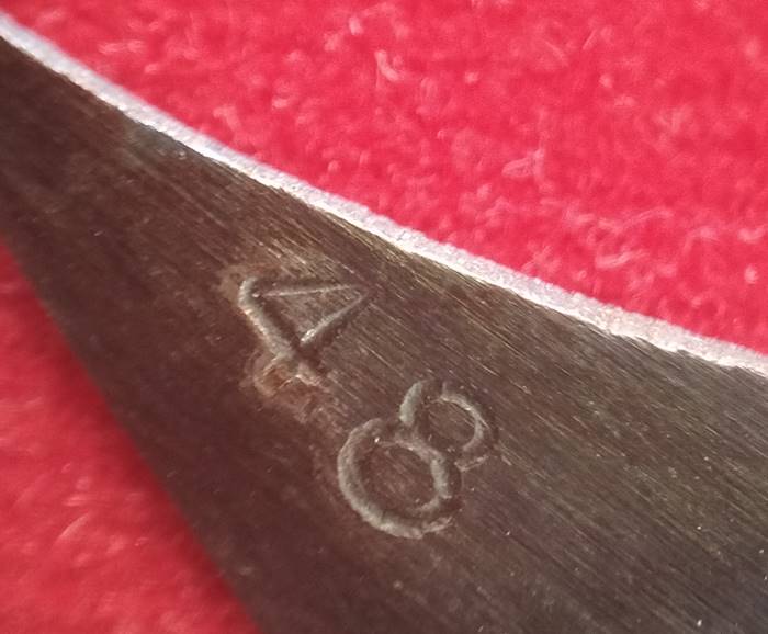 มีดหลวงพ่อจ้อยปี48ด้ามงาฝักไม้ยาว9.2นิ้วใบยาว5นิ้วเหล็กน้ำพี้เลข358จัดส่งตามรูปครับ
