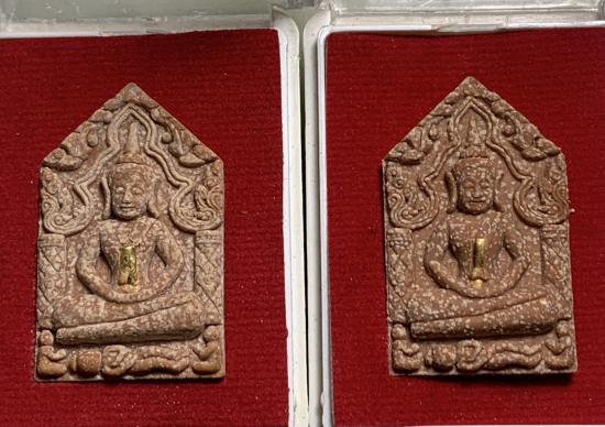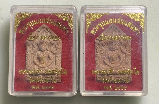 พระขุนแผนฝนแสนห่า ตะกรุดทองคำ รุ่นแรก เนื้อว่านสาวหลง หลวงปู่เช้า เคาะเดียว 2 องค์