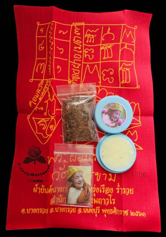 ชุดที่ระลึก๙๔ปี ** ยาเส้น รูปถ่าย สีผึ้ง ผ้านันต์นางกวัก ** พ่อท่านผอม ถาวโร วัดไทรขาม จ.นครศรีธรรมราช หายากมากๆๆๆ