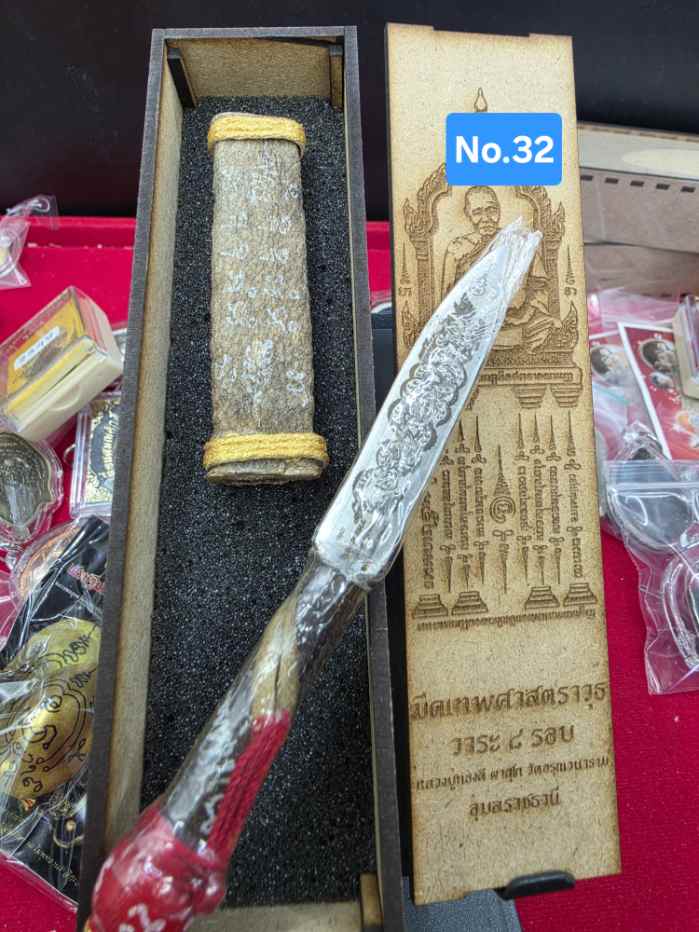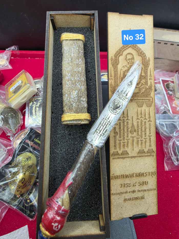มีดหมอหนังช้างแท้ 2หน้า ลายพญาครุฑ กับ นาคเกี้ยว No.32วาระ 8 รอบหลวงปู่ทองดี จังหวัดอุบลราชธานี พร้อมกล่องไม้เดิมๆ