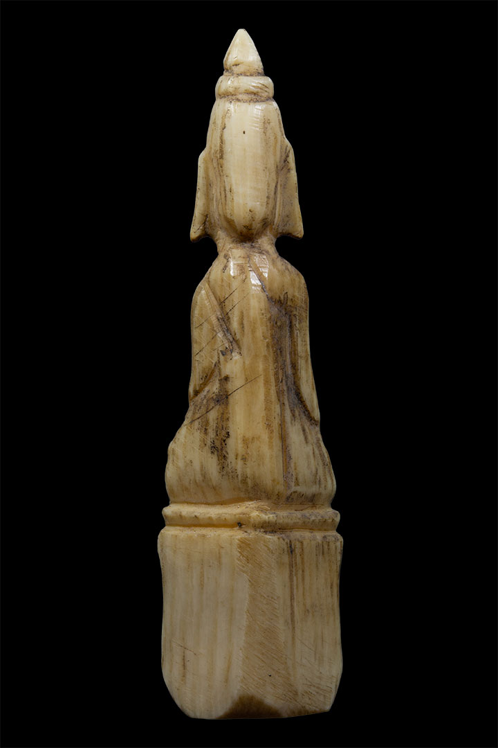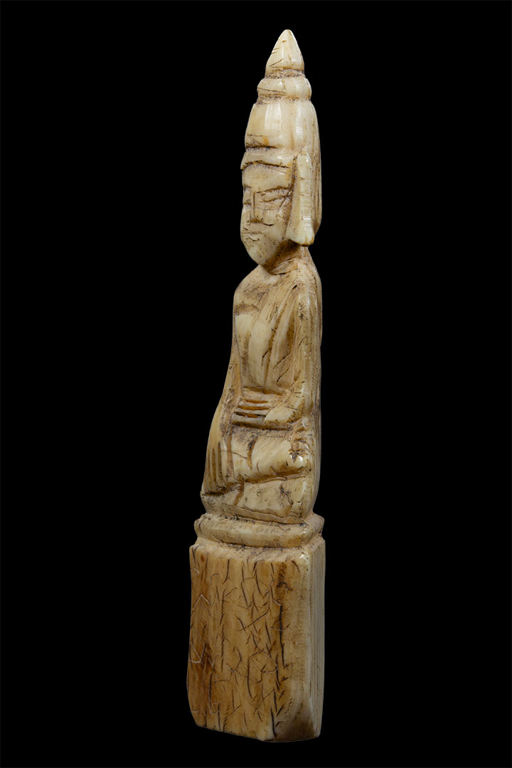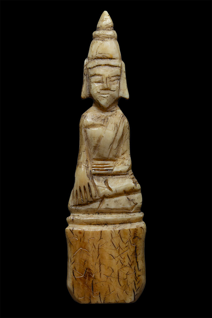 งาแกะมีคุณวิเศษในตัวตามความเชื่อโบราณเรื่องมหาอำนาจ เมตตาบารมี และป้องกันสิ่งอัปมงคล ยิ่งเป็นรูปองค์พระพุทธศิลป์เชียงรุ้ง ยิ่งเสริมด้านความร่มเย็นเป็นสุขและการมีกินมีใช้ สภาพสวยสมบูรณ์ตามกาลเวลา ไร้รอยซ่อม รอยแกะเก่าดั้งเดิม เส้นสายคมชัด เนื้องาแห้งสนิทเป็นธรรมชาติ |