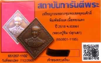 เหรียญกรมหลวงชุมพรเขตอุดมศักดิ์ พิมพ์หลังผด เนื้อทองแดง ปี2518 จ.ระยอง พร้อมบัตรรับรอง