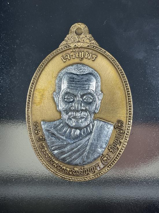 เหรียญเจริญพรหลังพัดยศ รุ่น รวยเลื่อนยศ พ่อท่านอิ่ม ปัญญาวุโธ วัดทุ่งนาใหม่ จ.นครศรีธรรมราช
