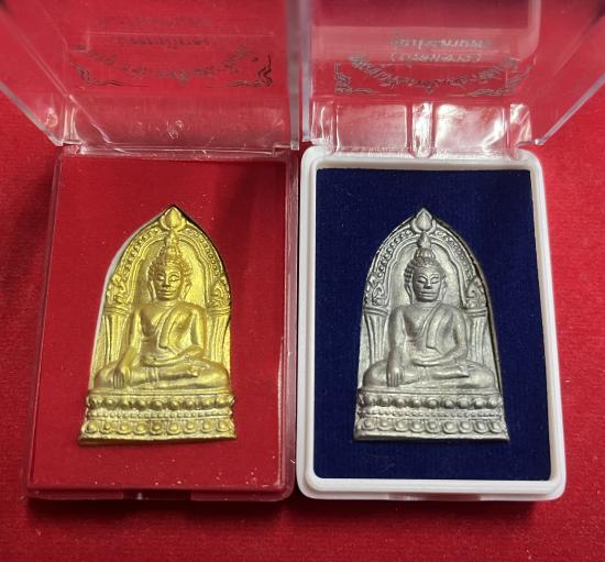 รายละเอียด พระพุทธชินราชใบเสมาชินเงิน ปรอทเงิน-ทอง รุ่นประทานพร ปี2547 พิษณุโลก สภาพสวยพร้อมกล่อง