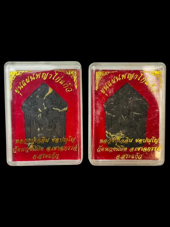 ขุนแผนพญาไก่แก้ว เนื้อเสือดำ ด้านหลังยันต์เกาะเพชร หลวงปู่เฉลิม ผลปญฺโญ วัดพวงนิมิต จ.สระแก้ว |