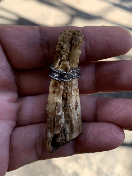 เคาะเดียวๆๆๆๆเครื่องรางของขลัง เขี้ยวหมูตันติดงอกเก่าๆเหลี่ยมเงินพร้อมใช้ห้อยคอหรือพวงกุญแจกำลังสวยเลย