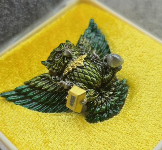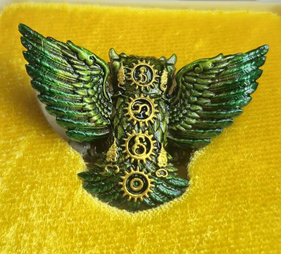 พิมพ์ใหญ่เครื่องรางสายเหนือ พญานกถึดทือ ครูบาศักดิ์ จ.ลำปาง เนื้ออัลปาก้าซาติยลงยาเขียว พุทธคุณ โชคลาภวาสนา นักเสี่ยงโชคดีนักแล กล่องเดิม