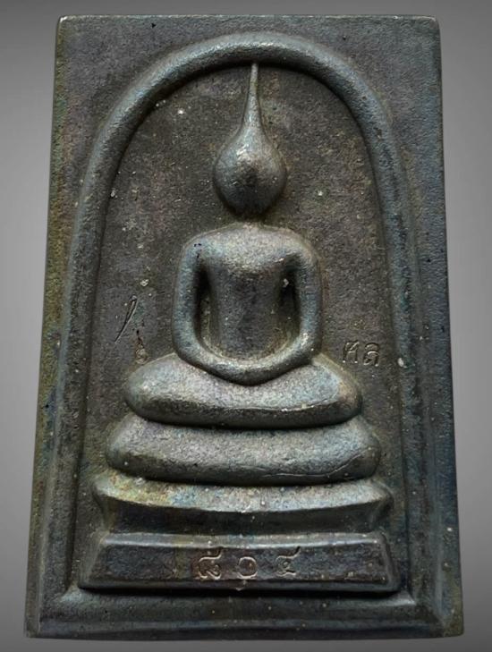 พระสมเด็จหล่อ รวยชินบัญชร หลังลายนิ้วมือ ลป.ศิลา เนื้อสัตตะโลหะผิวรุ้ง No.๘๐๔ สภาพสวยมาก กล่องเดิมๆ