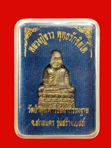 รูปหล่อหลวงปู่ขาว พุทธรักขิโต วัดป่าคูณคำ รุ่นสร้างโบสถ์ เนื้อนวะโลหะ กล่องเดิม