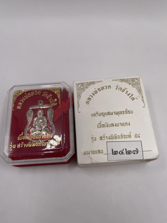 เหรียญเสมาพุทธซ้อน เนื้อเงินลงยาแดง รุ่นสร้างพิพิธภัณฑ์ 58 หมายเลข 2427 พร้อมกล่องเดิม