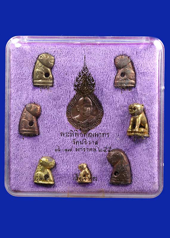เสือย้อนยุค ที่ระลึกพระพิพิธพัฒนาทร ( หลวงพ่อสมชาย ) วัดปริวาส กรุงเทพฯ พ.ศ.2550 กล่องชุด 8 องค์ พร้อมกล่องเดิมๆ