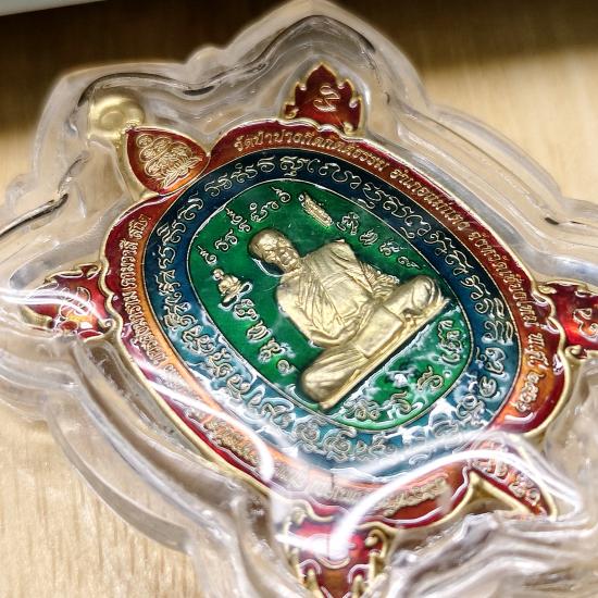พญาเต่าเรือนโภคทรัพย์ หลวงปู่บัวเกตุ ปทุมสิโร รุ่นมีลาภ อายุยืน เนื้อทองฝาบาตรลงยา เลขมงคล 108