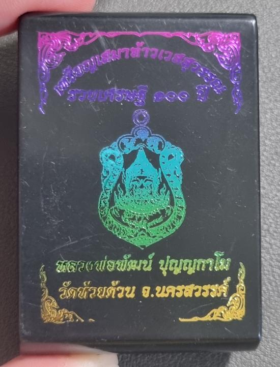 (วัดใจ) เหรียญเสมาท้าวเวสสุวรรณ รวยเศรษฐี 100 ปี หลวงพ่อพัฒน์ วัดห้วยด้วน จ.นครสวรรค์ (ไม่ทราบเนื้อ เลข 105 เลขสวยๆ) พร้อมกล่องเดิม