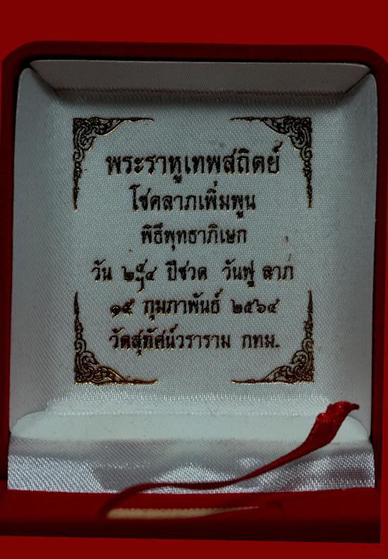 พระราหูเทพสถิตย์ เพื่อโชคลาภเพิ่มพูน พิธีพุทธาภิเษกจัดขึ้นที่วัดสุทัศนเทพวราราม กรุงเทพมหานคร วันเวลา: วันที่ 14 กุมภาพันธ์ พ.ศ. 2564 (ปีชวด)