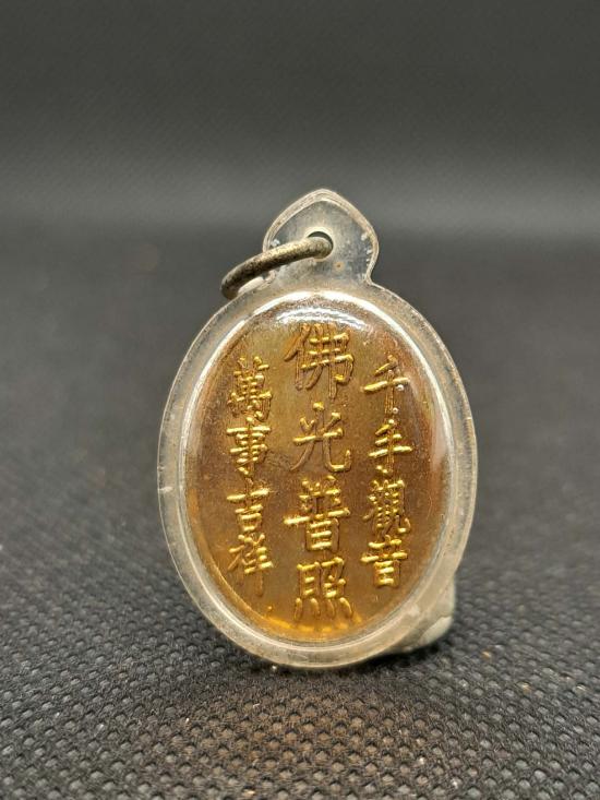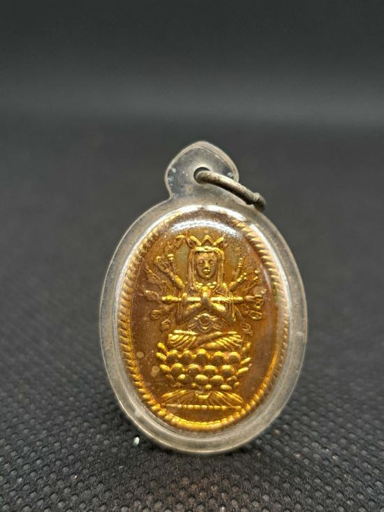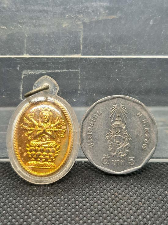 เหรียญพระโพธิสัตว์เจ้าแม่กวนอิมพันกร (เนื้อกะไหล่ทอง) เลี่ยมพลาสติกเดิมๆพร้อมใช้ เคาะเดียว