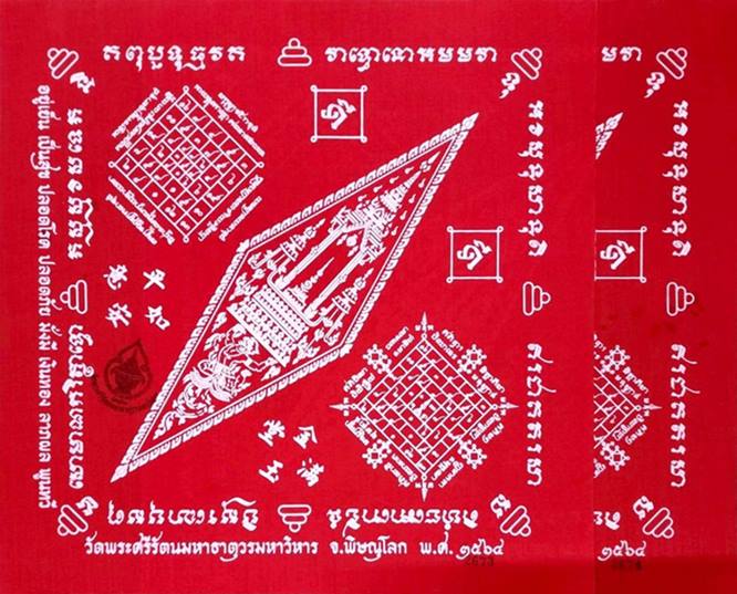 ( 2 ผืน สีแดง ) ผ้ายันต์ อกเลา ขนาด 30CM x 30 CM ปี 2564 วัดพระศรีรัตนมหาธาตุวรมหาวิหาร จัดสร้างเอง