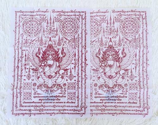 $เคาะแรกเบาวัดใจทีเดียว 2 ผืนค่ะ ผ้ายันต์ครุฑน้อยธรรมชัย รุ่น เศรษฐีพันล้าน วัดธรรมชัยมงคล ทุ่งละคร อ.แม่แตง จ.เชียงใหม่ สีขาว ขนาดประมาณ 12 X 16.5 นิ้ว เลข 207 + เลข 220 ค่ะ$ |