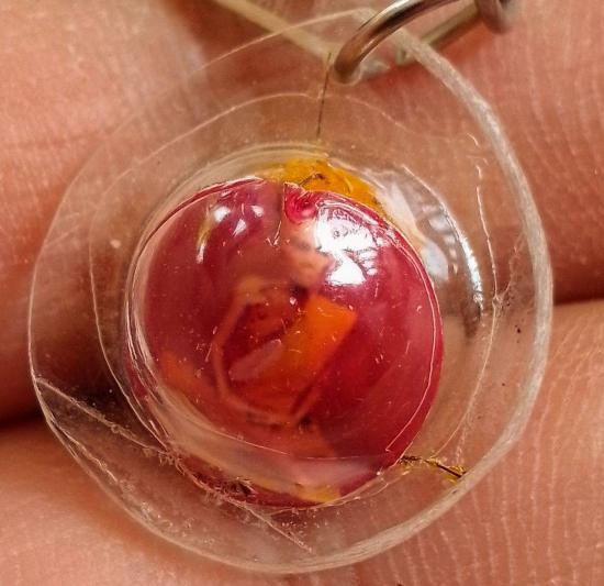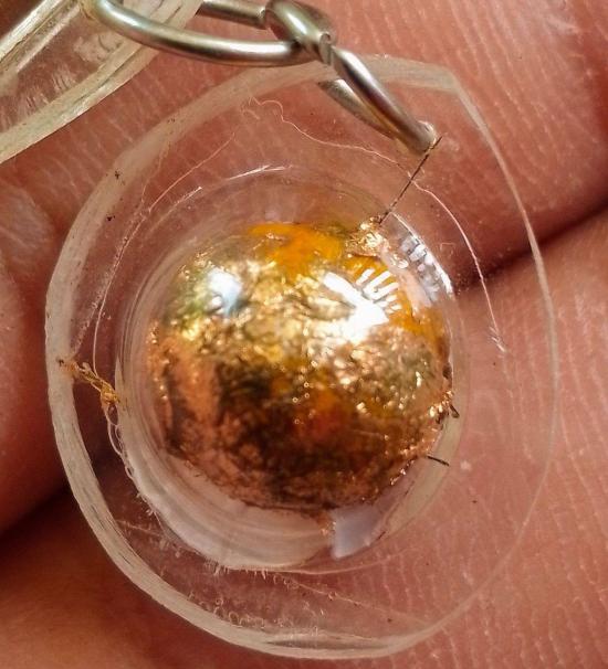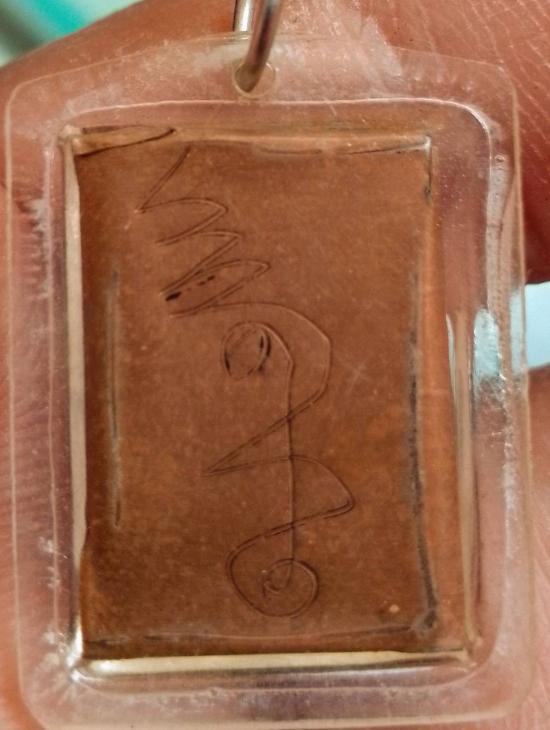 รูปถ่ายหลังหุ้มแผ่นทองแดงยุคต้น หลวงพ่อพร้า วัดโคกดอกไม้ จ.ชัยนาท ปี 2517 (หลังจาร)+ลูกอม