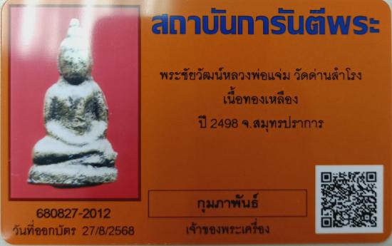 พระชัยวัฒน์หลวงพ่อแจ่ม วัดด่านสำโรง ปี 2498 จ.สมุทรปราการ