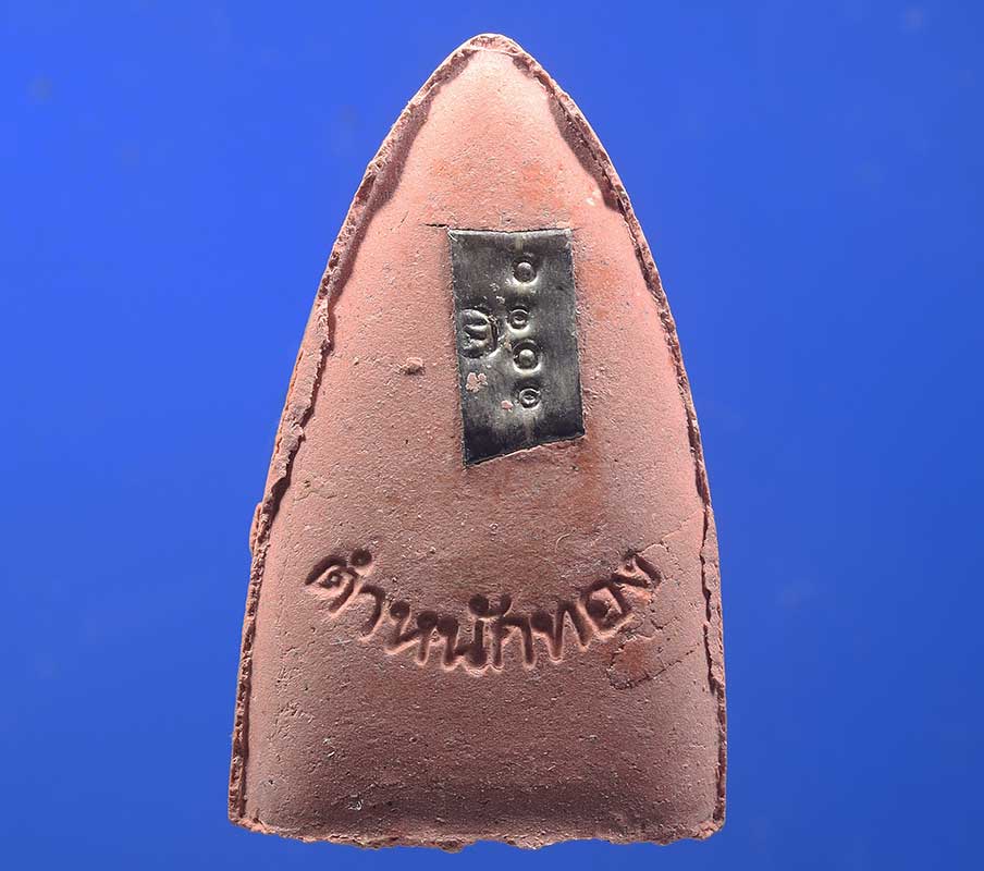 เนื้อผงสีแดง หลังติดแผ่นเงิน ตอกโค้ด ตอกเลข