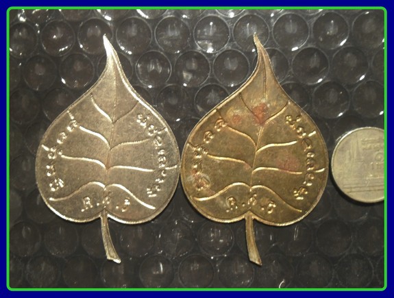 โพธิ์เงิน+โพธิ์ทอง 2ใบ-300-แผ่นปั้มใบโพธิ์ เนื้อโลหะ อธิษฐาน รุ่นแรก พระอาจารย์วิริยังค์ วัดธรรมมงคล กทม.*