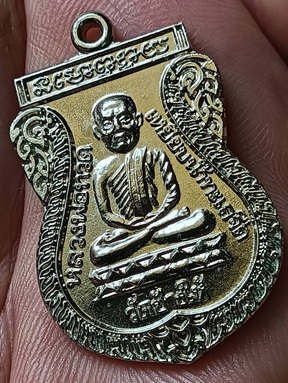 เหรียญหลวงปู่ทวด วัดช้างให้ จ.ปัตตานี รุ่นใต้ร่มเย็น บล็อกกองกษาปณ์ เนื้อทองแดงชุบนิกเกิล ปี 2526 หลัง น.หนู