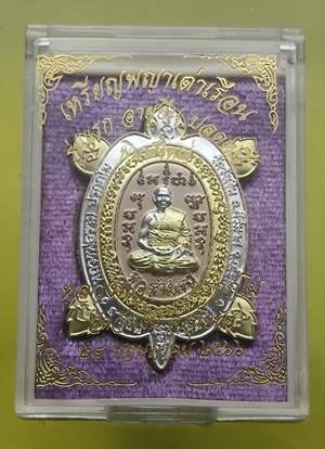 เหรียญพญาเต่าเรือน รุ่นแรก อายุยืน ปลดหนี้ (พิมพ์ใหญ่) เนื้อ สามกษัตริย์ หลวงพ่อราม ปรกกโม วัดวังเงิน จ.สุโขทัย ปี ๖๖ สวย พร้อมกล่องเดิม วัดใจ หมายเลข ๘๕