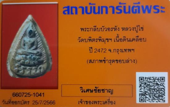 พระกลีบบัวอรหัง หลวงปู่ไข่ วัดบพิตรพิมุขฯ เนื้อดินเคลือบ ปี 2472 จ.กรุงเทพฯ