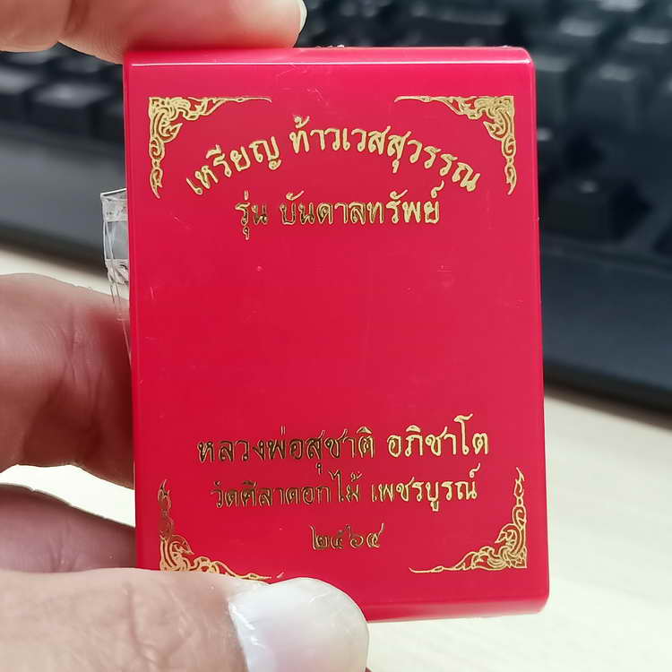 วัดใจ 100 เหรียญท้าวเวสสุวรรณ บันดาลทรัพย์ หลวงพ่อสุชาติ อภิชาโต วัดศิลาดอกไม้ จ.เพชรบูรณ์ 2564 อปก.173 กล่องเดิม