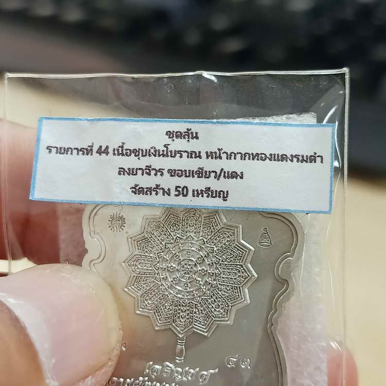 วัดใจ 100 เหรียญเจริญยศ พ่อท่านผ่อง วัดแจ้ง อ.เมือง จ.พัทลุง 2567 ชุบเงินโบราณ หน้ากากทองแดงรมดำ ลงยา หมายเลข 43 กล่องเดิม