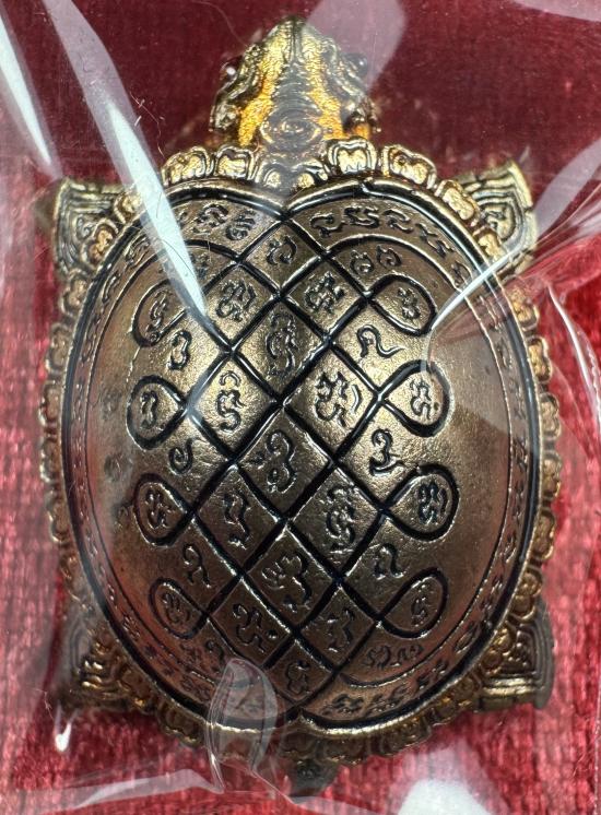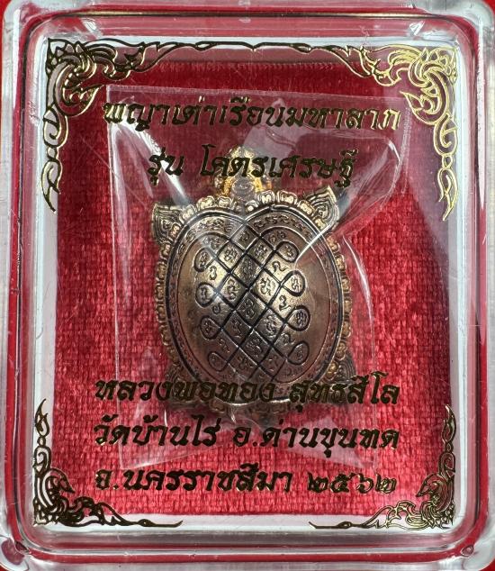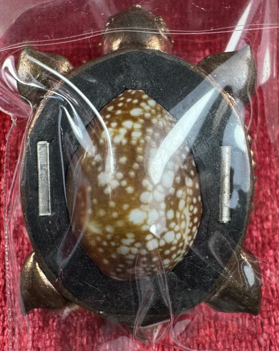 พญาเต่าเรือนมหาลาภ รุ่น "โคตรเศรษฐี"ด้านหลังอุดเบี้ยแก้ด้านในบรรจุปรอท ฝังตะกรุดมหาลาภเงินแท้ 2 ดอก เนื้อทองแดงลงยา 3 สี หมายเลข 66 หลวงพ่อทอง วัดบ้านไร่ จ.นครราชสีมา