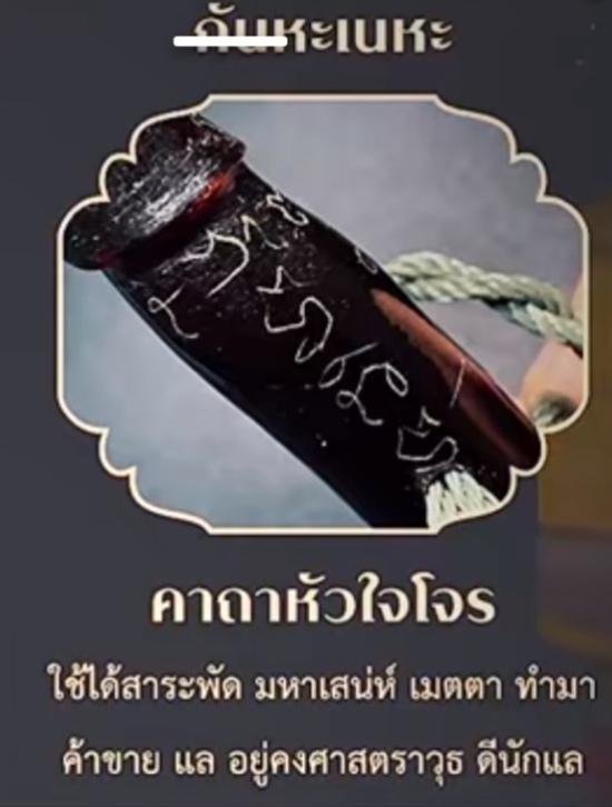 ท่านลงคาถาหัวใจโจร "กันหะเนหะ" หัวใจโจรนี้ ใช้ได้สรพัด มหาเสน่ห์ เมตตาทำมาค้าขาย และ คงศาตรวุธ ดีนักแล